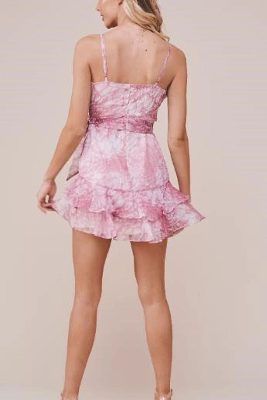 Summer soirees just got a little chicer with the arrival of the Annika Mini Dress! A lightweight floral print cami surplice ruffle fit and flare skirt with a self-tie waist. Also features a v-neckline, adjustable spaghetti straps and a hidden back zipper. Dress it up or down with heels or sandals!