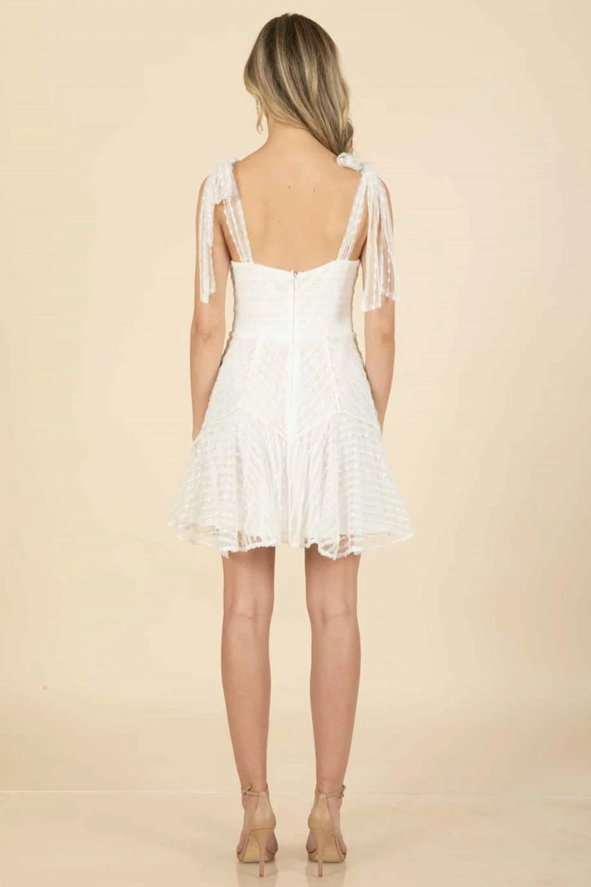 Hey there, cutie! You’ll feel like a princess in our adorable Fedra Mini Dress. Featuring bow tie shoulder straps and a sweetheart neckline. Look all kinds of glam with this dress. It’s perfect for bridal events and even a weekend brunch with your girls styled with your go-to accessories and strappy heels for an elevated look.
