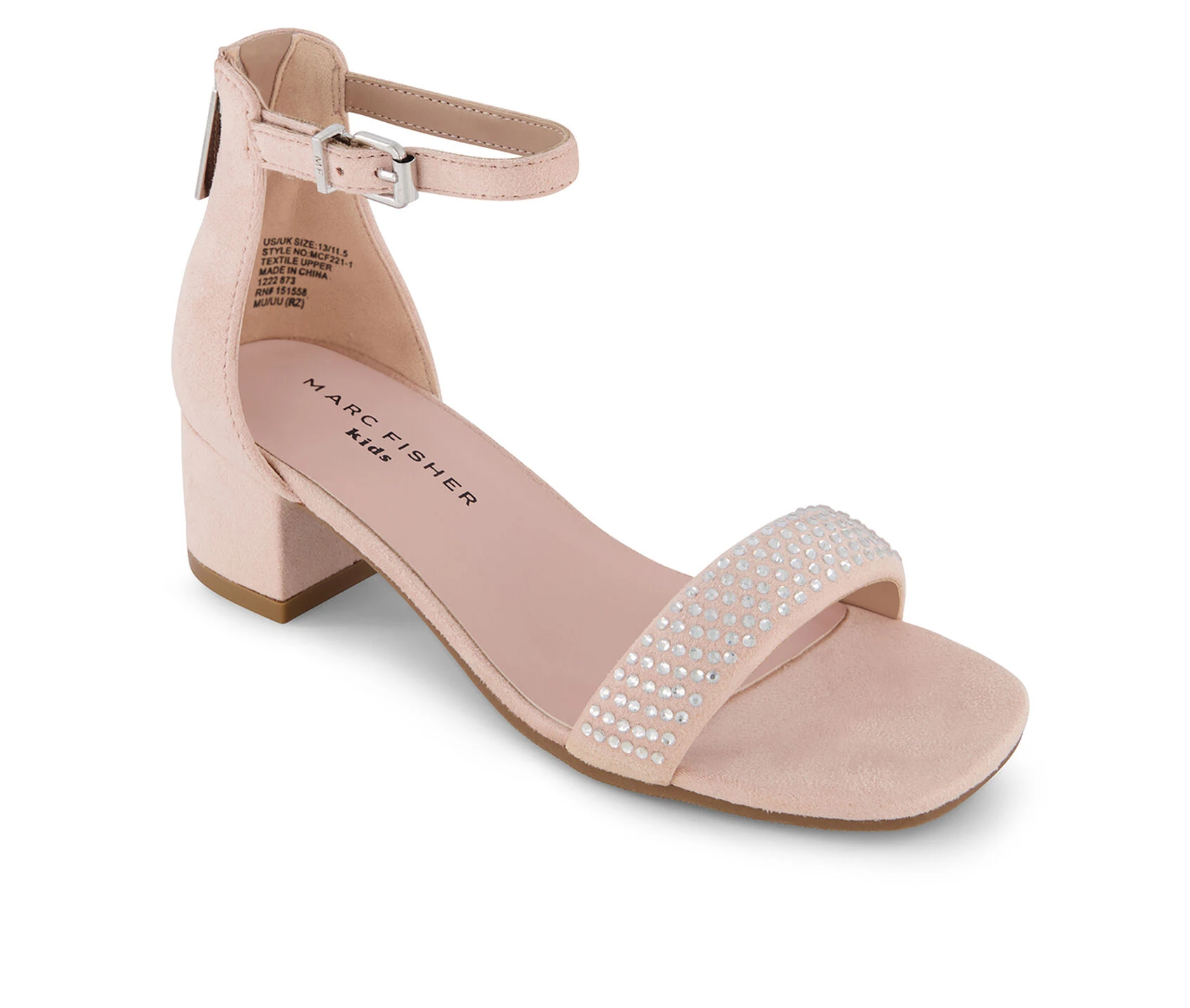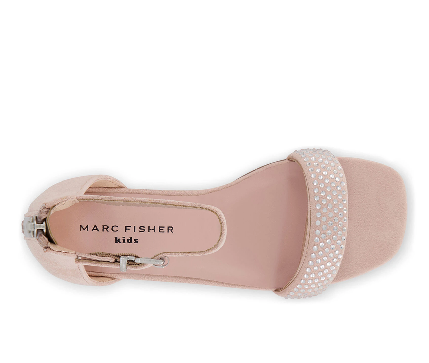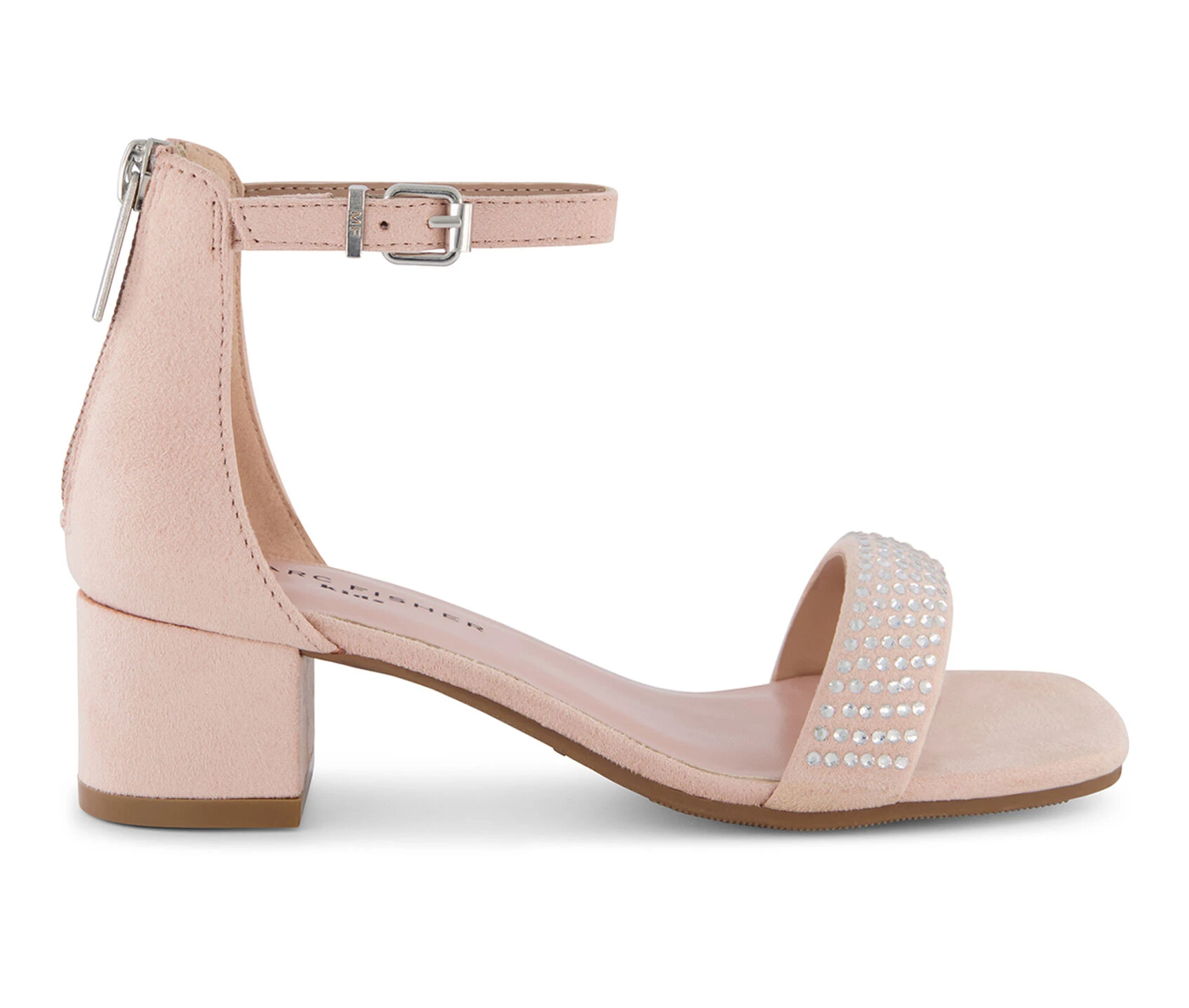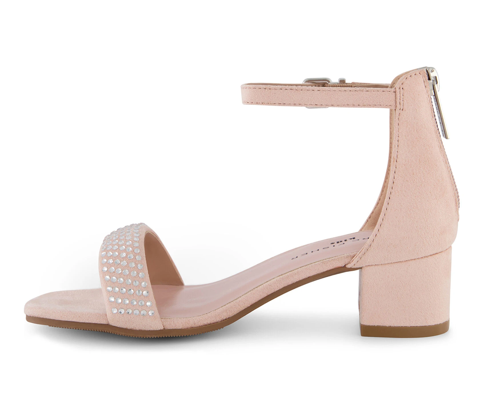 - Synthetic upper with embellished rhinestone vamp strap