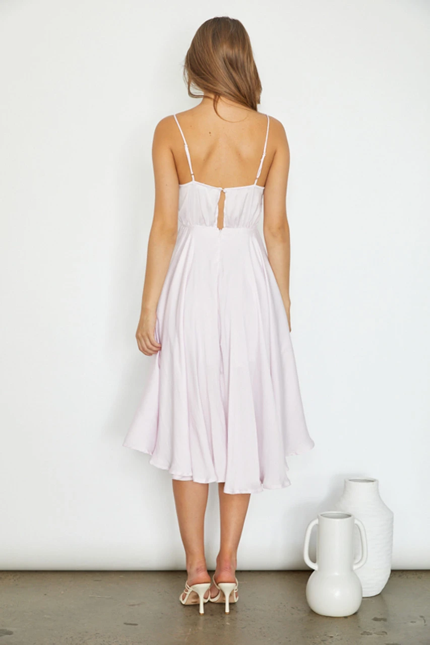 This sun-ready number is feminine, lightweight and easy to style for a range of occasions – day or night. Following a flattering charmeuse tied front cami, asymmetric hemline, adjustable straps and a keyhole button back for extra comfort. . Dress it up with heels or dress it down with sandals.