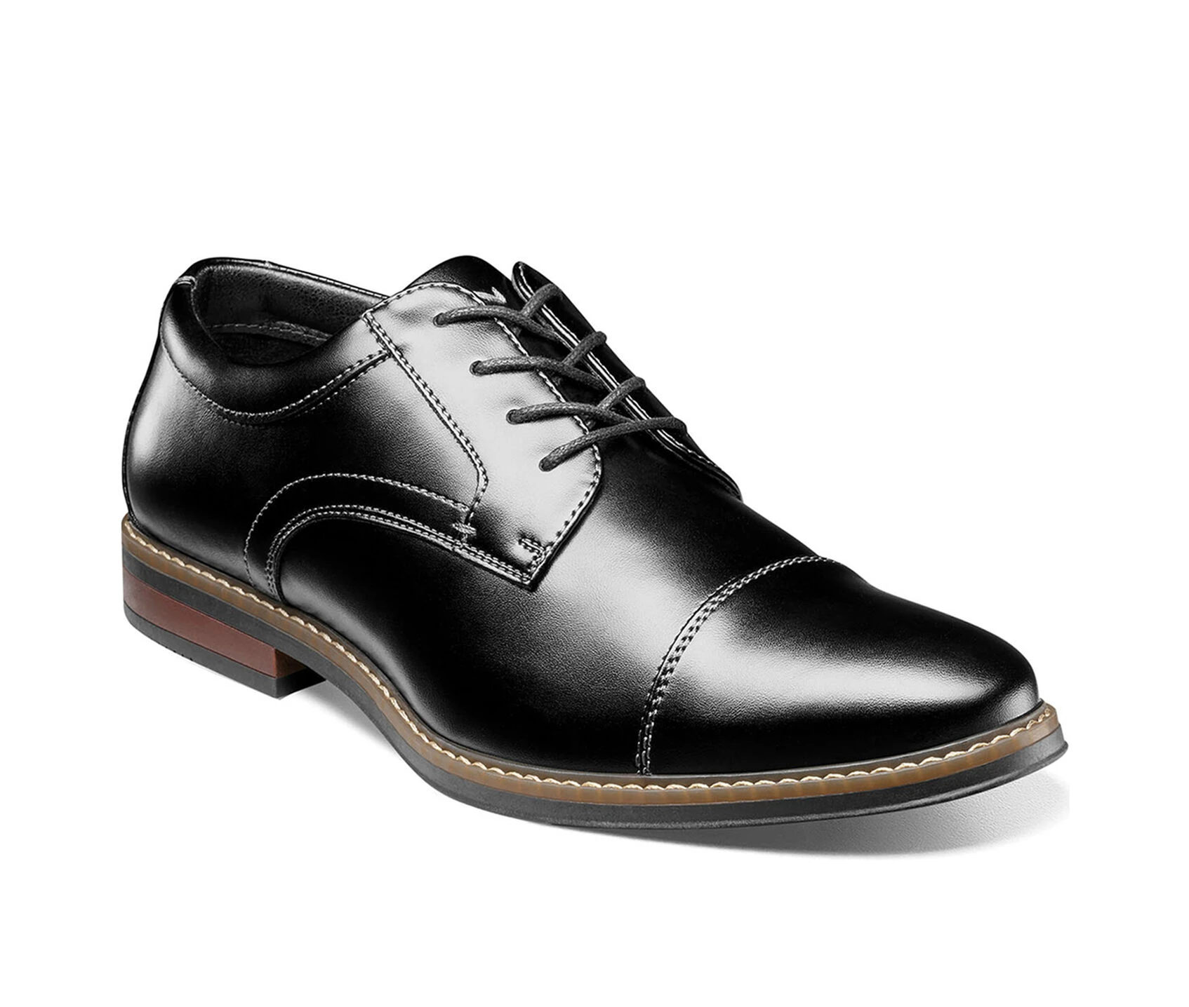 - Thanks to its contrasting welt stitching and stacked heel, a classic cap toe becomes a modern masterpiece with the Nunn Bush Carmelo Cap Toe Oxford. Featuring the comfort of breathable linings and a cushioned footbed, it has the versatility to be worn to work or a night out.