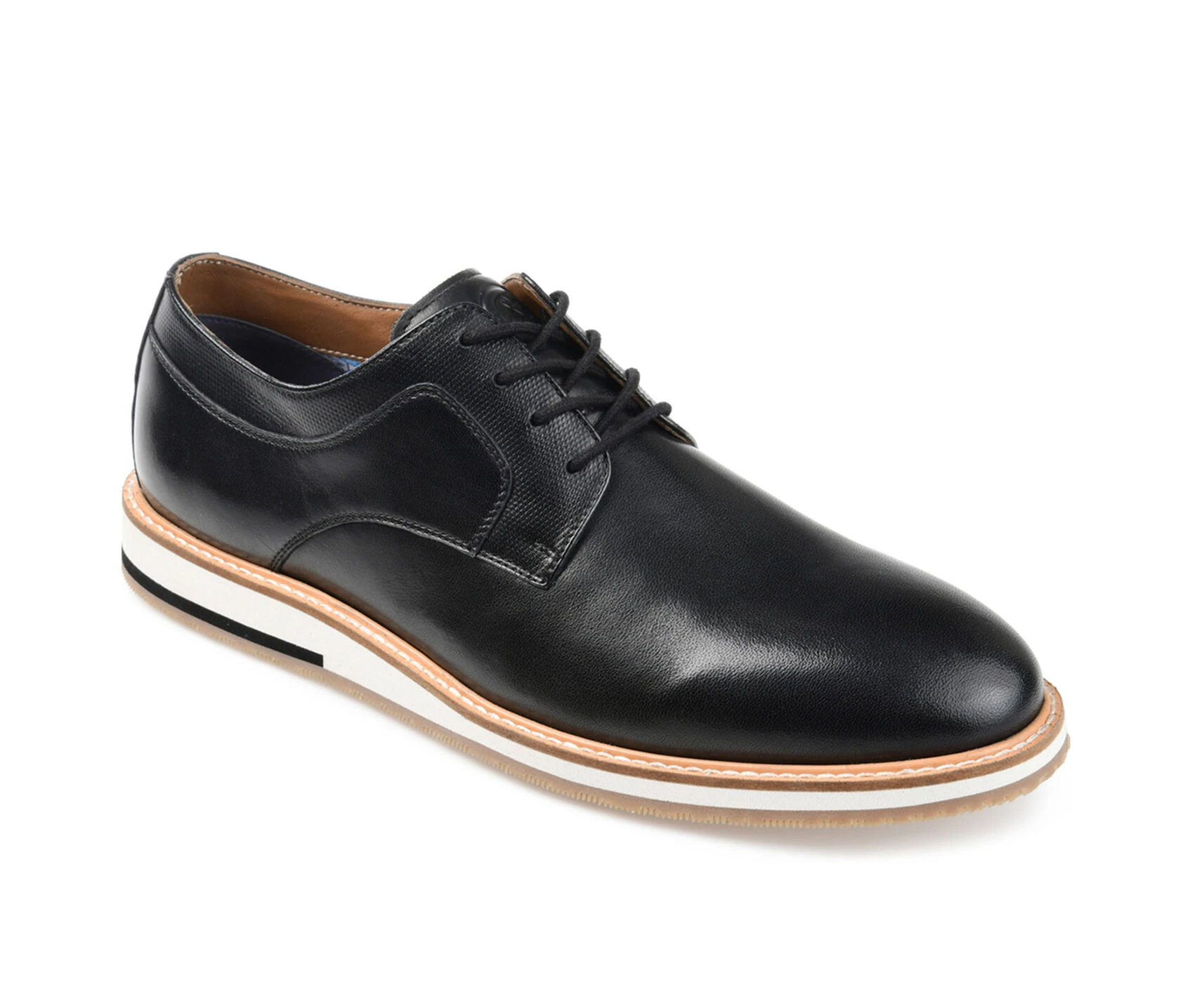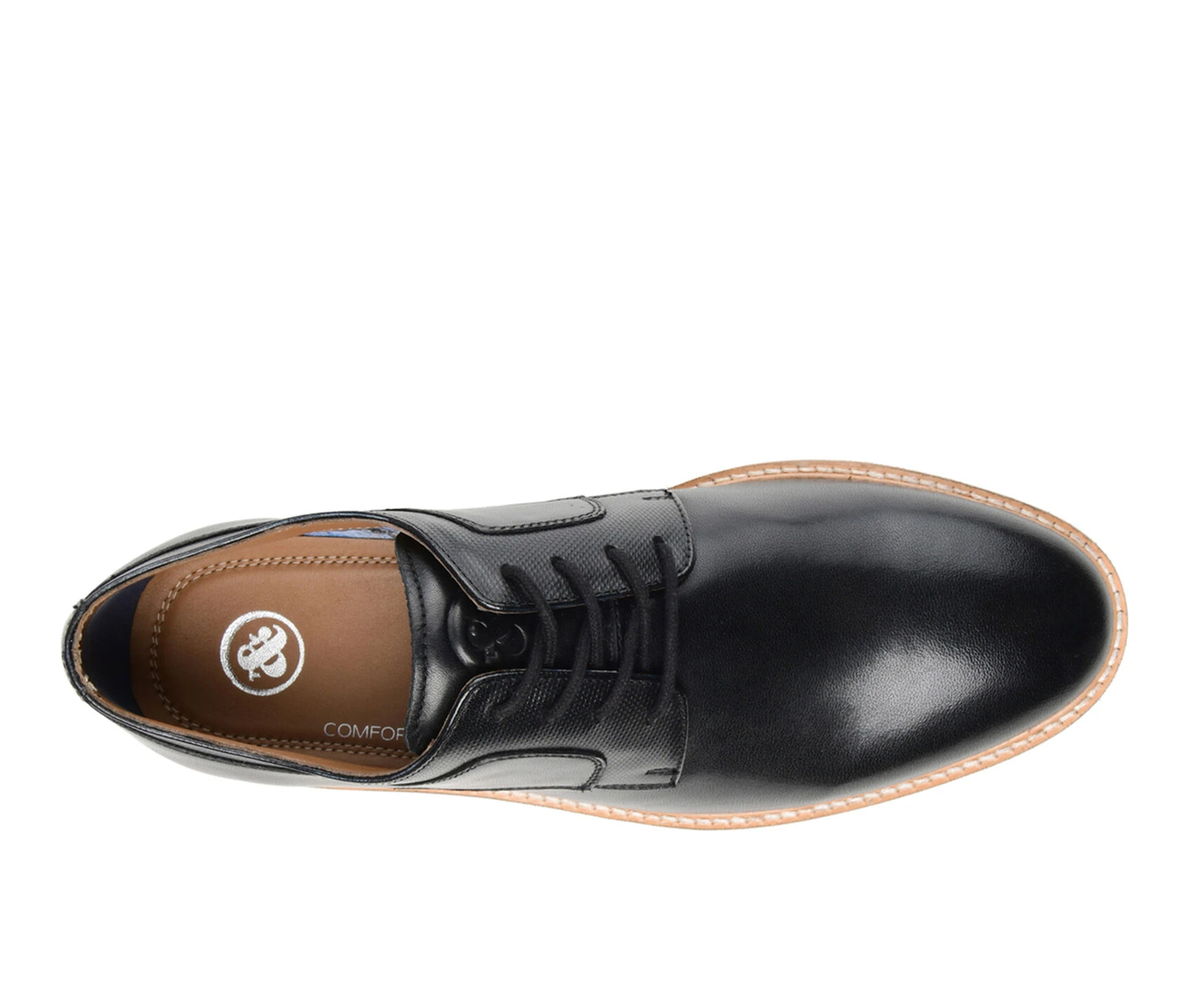 - Step up your shoe game with this versatile Glover wide-width derby from Thomas & Vine. The classic lace-up design, embossed leather accents, and genuine leather construction give you an easy but refined style. The 8 mm Tru Comfort Foamâ„¢ insole and padded tongue give added comfort, while the lightweight EVA sole offers cushioning and support for all-day wear. This derby shoe is perfect for dressing up or down, making them a must-have in your rotation. Pair them with chinos and a button-up shirt for a dressed-up look or jeans and a t-shirt for a laid-back vibe.