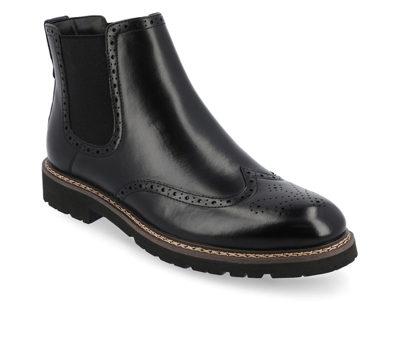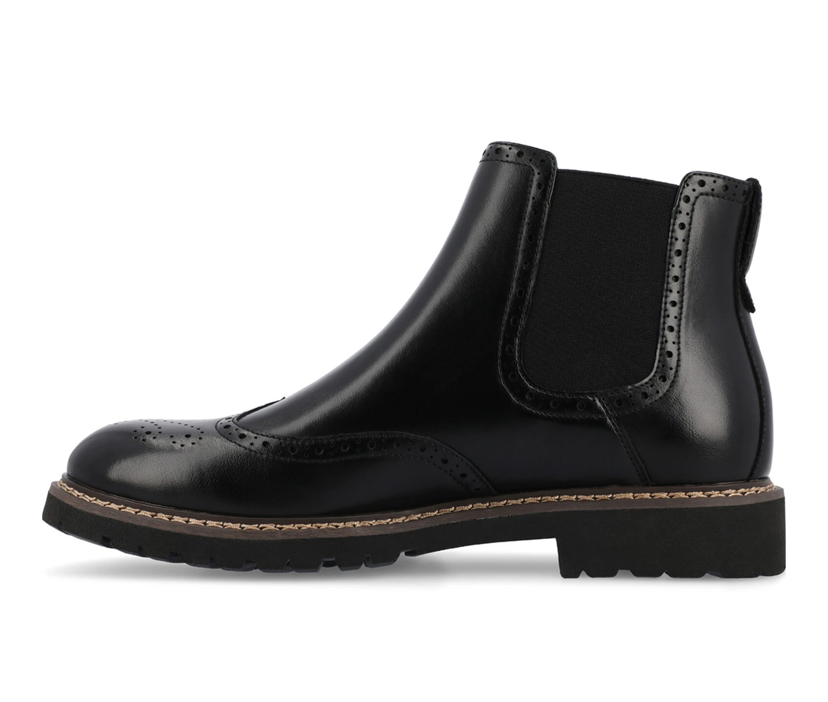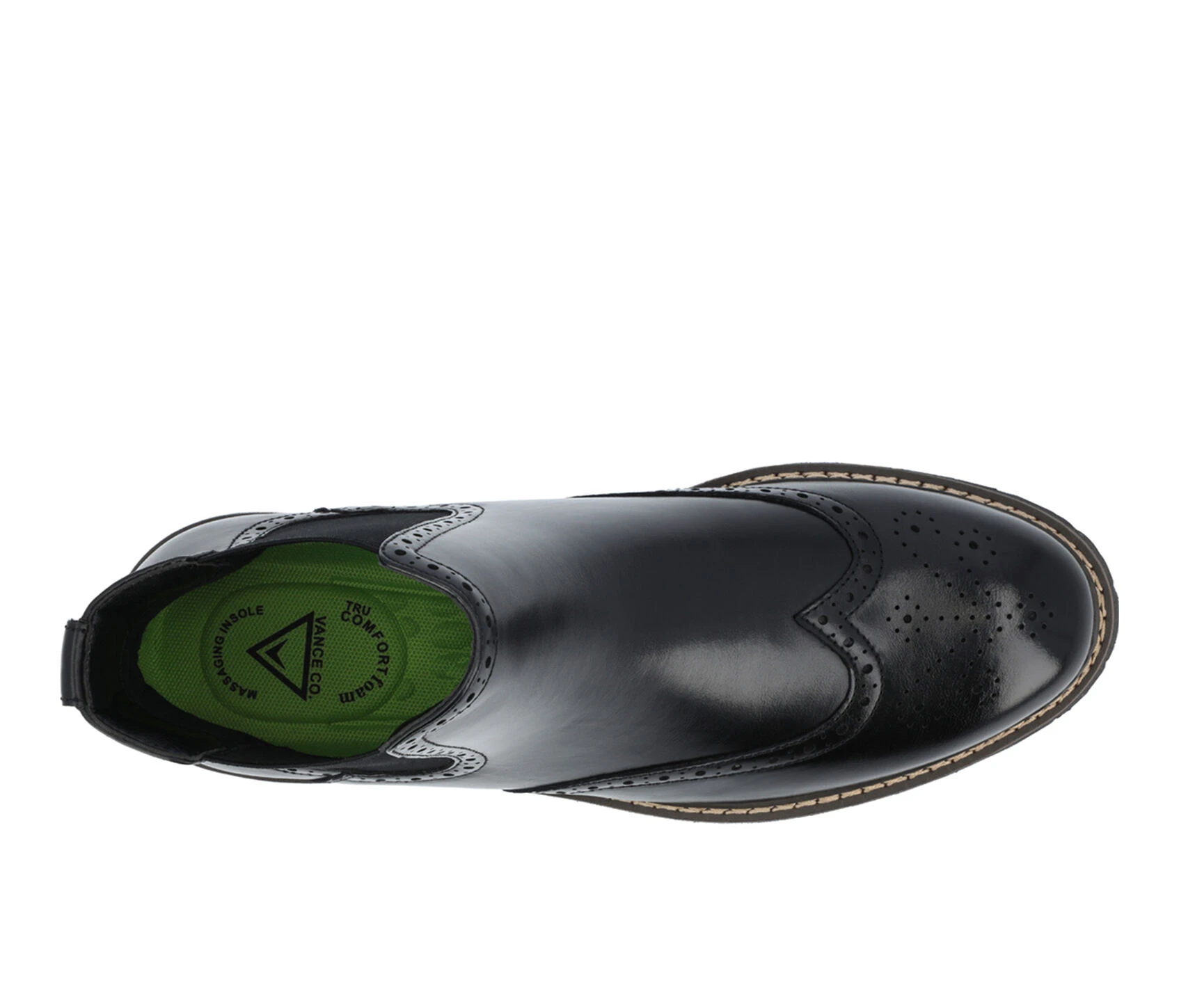 - Introducing the Hogan ankle boot by Vance Co. Crafted with premium vegan leather, these boots offer both style and comfort. Featuring a convenient pull-on design with chelsea stretch gore, they are easy to slip on and off. With a 12 mm Tru Comfort Foamâ„¢ insole and a 1 1/4 – inch block heel, they provide optimal support. The round-toe shape and wingtip detailing give it a classic finish.
