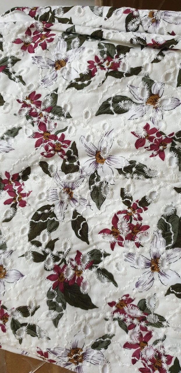 You will fall in love with the fabric of the Michaela featuring broderie lace embroidered on a gorgeous floral orchid print! This midi dress offers a low back which can be laced up, paired with a body hugging skirt and hemmed with a high-low skirt. It has an invisible zipper in the center back.Â
